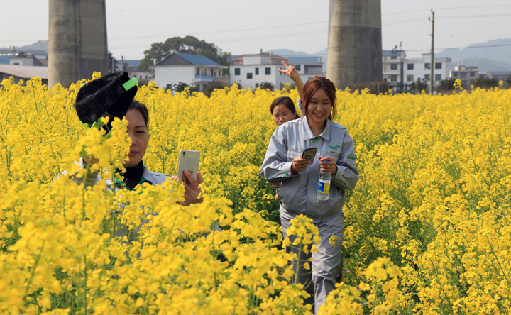 春風得意馬蹄疾,開春閱盡上饒花。在公司工會的精心準備下,一行人首先來到了丁家村的春色田園中,丁家村村委會前大片金黃色油菜花燦爛盛開,宛如一張巨大的黃金地毯鋪在那里,迎接晶科光伏材料女同胞們的到來。春光明媚,風和日麗,沐浴在溫暖的陽光中,呼吸著新鮮的空氣,在這個花開的季節(jié)中,所有人仿佛變成了孩子,歡蹦亂跳,享受著這份孩童般的純真與激情。在這過程中她們遠離工作的壓力,縱情花海田園之間,在嬉戲的同時,更感受到了大自然春的氣息,綻放著作為女人的美麗。