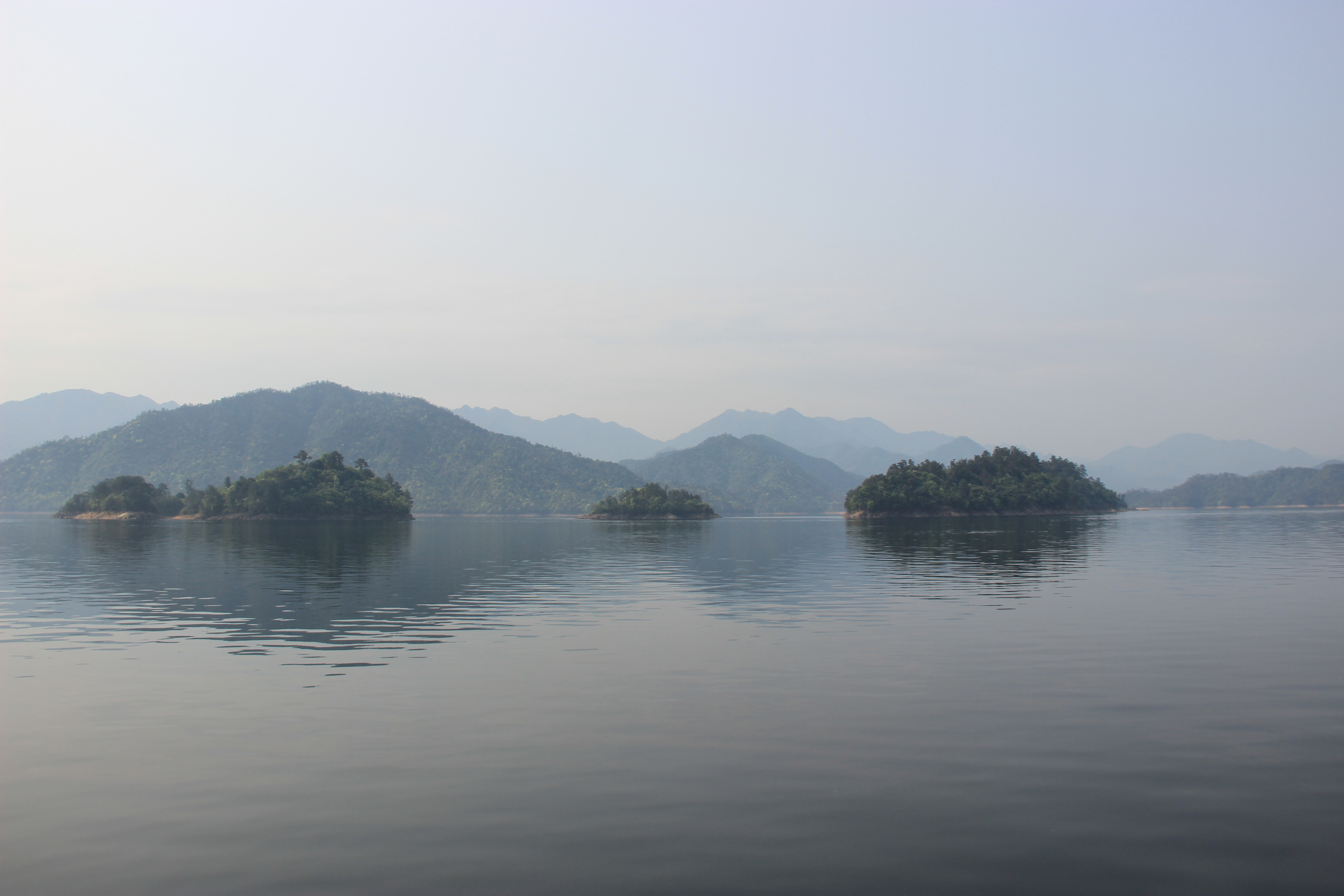 在第一日欣賞完靈棲洞、古村的美景后。第二日眾人來到了此行最期待的千島湖。千島湖之美,在于千島、秀水、金腰帶(島嶼與湖水相接處環(huán)繞著有一層金黃色的土帶,稱之名“金腰帶”)為主要特色景觀,是中國首批國家級風景名勝區(qū)之一。在游船上賞湖島美景,登梅峰觀島覽全湖之盛?!安簧厦贩逵^群島,不識千島真面目”