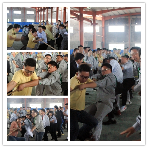 經(jīng)過一個小時的比賽后,金屬型材隊伍和PMC隊伍,進入了男子組團體拔河冠軍爭奪賽。由于雙方實力相當(dāng),難分高下,激烈賽況把本次活動推向了高潮。兩隊隊員憋紅了臉,勒紫了手,金屬型材隊伍力壓群雄,獲得了這場強者間的較量,奪得了拔河比賽的冠軍。而女子組的戰(zhàn)況毫不遜于男子組,來自接線盒的巾幗和來自品質(zhì)部的英杰互相擦出了激烈火花,雙方各勝一局,最后一局在長達2分鐘的僵持后終被接線盒隊伍拿下。在男女組冠軍角出后,本次活動也在愉快的歡呼聲中結(jié)束。
