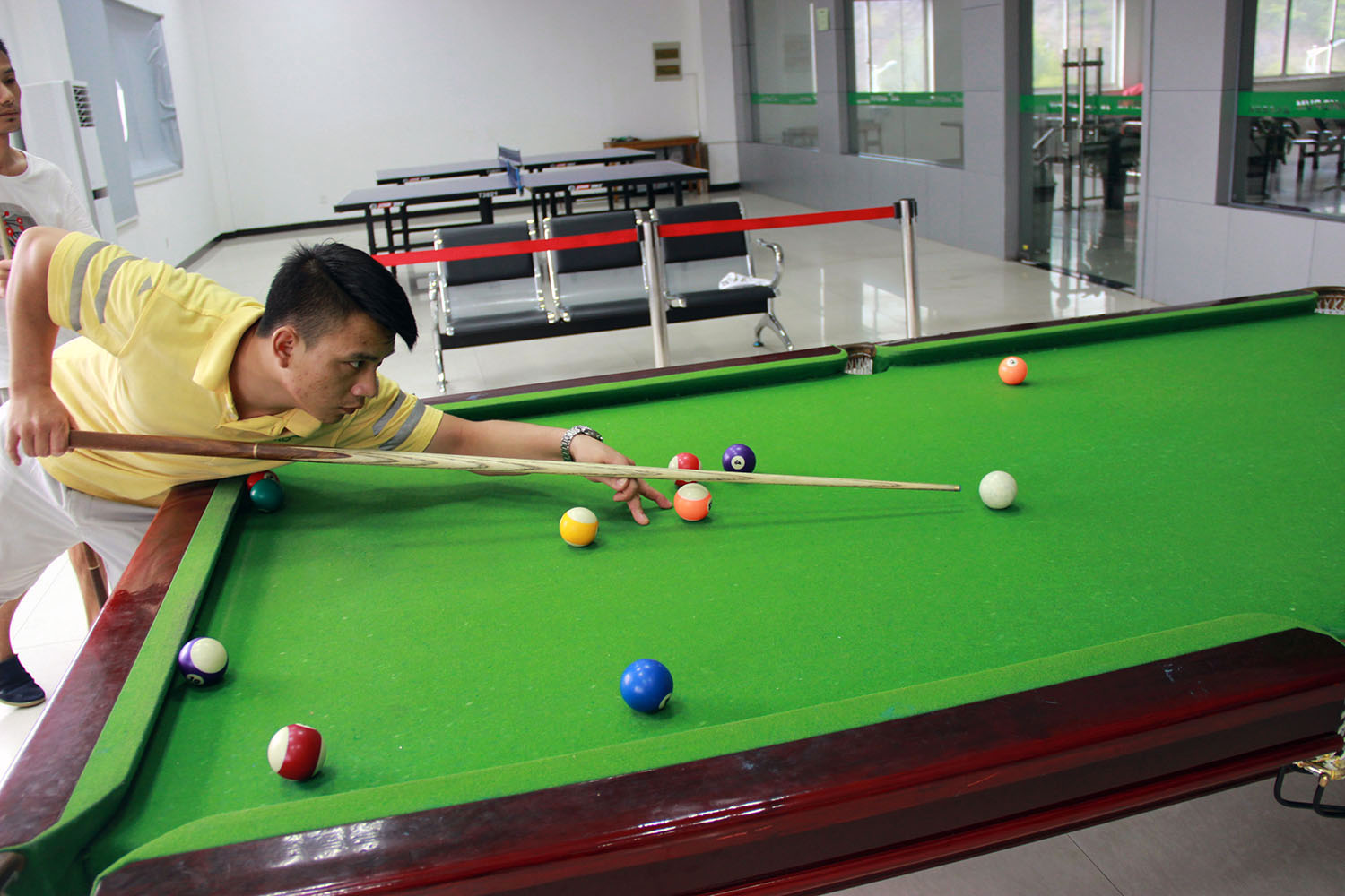 2017年8月23日下午2:00,由晶科光伏工會、人力行政部主辦的第二屆“光伏杯”中式臺球賽拉開序幕,本次比賽由來自于各車間各部門的43位選手組成,競賽規(guī)則遵循中式臺球比賽規(guī)則2014。資格入圍賽采用三局兩勝制,32強、16強賽采用五局三勝制。
