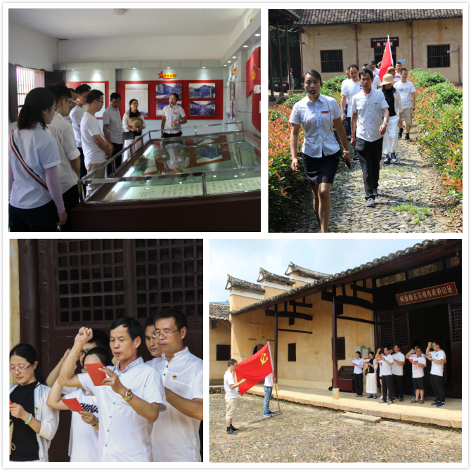 在閩浙贛省蘇維埃政府舊址前,全體黨員在黨支部書記的帶領下,高聲重溫了《入黨誓詞》。隨后,黨員們紛紛在舊址內參看,觀看展覽室上的烈士事跡。