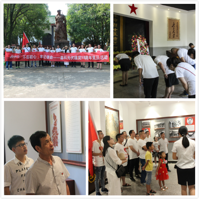 今年是中國共產黨成立98周年。值此建黨之月,晶科光伏黨支部開展了以“不忘初心、牢記使命”為主題的學習教育活動。7月20日,晶科光伏黨支部的黨員們懷著崇高的敬意,集體前往橫峰葛源愛國主義教育基地,深切緬懷烈士的不朽功績,大力弘揚烈士精神,表達凝心聚力、砥礪奮進的堅定信心和決心。