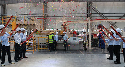 光伏材料事業(yè)部肥東基地25GW鋁邊框項目第一批設(shè)備投產(chǎn)運行!