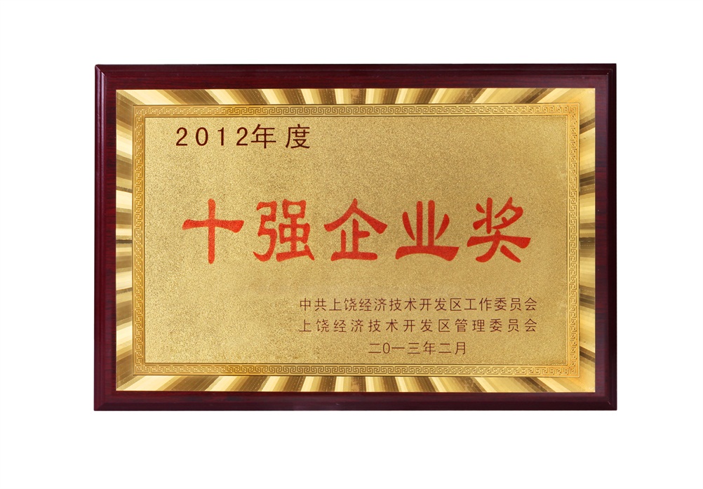 2012年上饒十強(qiáng)企業(yè)獎(jiǎng)